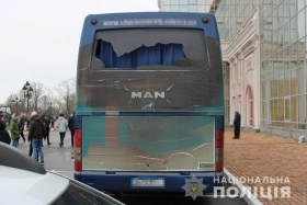 Автобус одесской команды повредили во время последнего матча с харьковским клубом Металлист. Осколки не задели никого из спортсменов, которы находились внутри салона.
