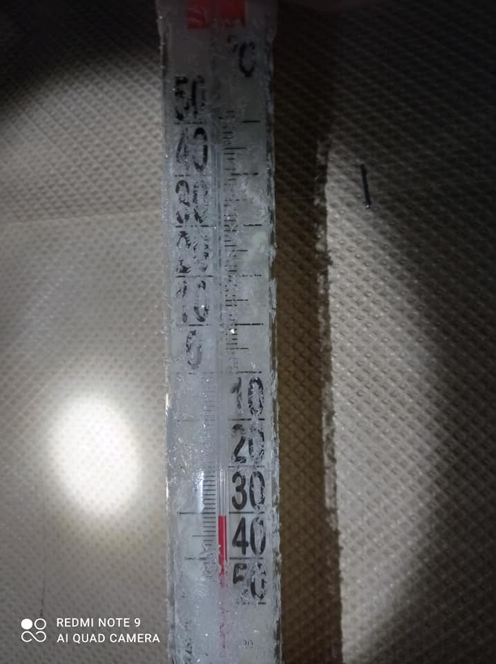 На снимках можно заметить, что столбец на термометре уполз за отметку в – 30 градусов по Цельсию.