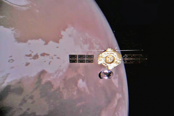 По случаю Нового года Китай опубликовал новые фотографии Красной планеты. Они были сделаны зондом «Тяньвэнь-1», который работает на планету с февраля 2021 года вместе с марсоходом «Чжуронг».