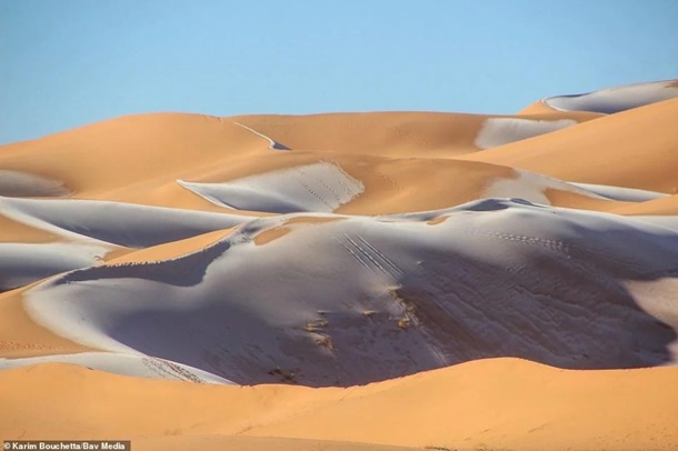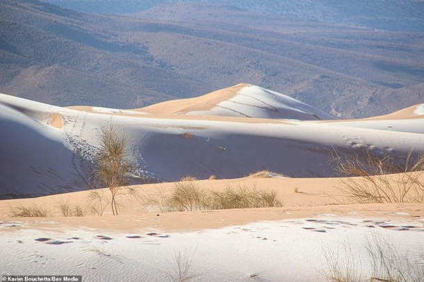 В Африке в пустыне Сахаре температура воздуха опустилась ниже ноля и выпал снег.