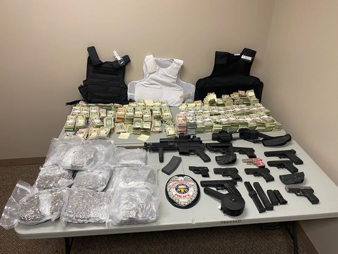 Кроме наркотиков и крупной суммы наличных, правоохранители изъяли 11 пистолетов, полуавтоматическую винтовку AR-15, три бронежилета и нелицензионные игровые автоматы.