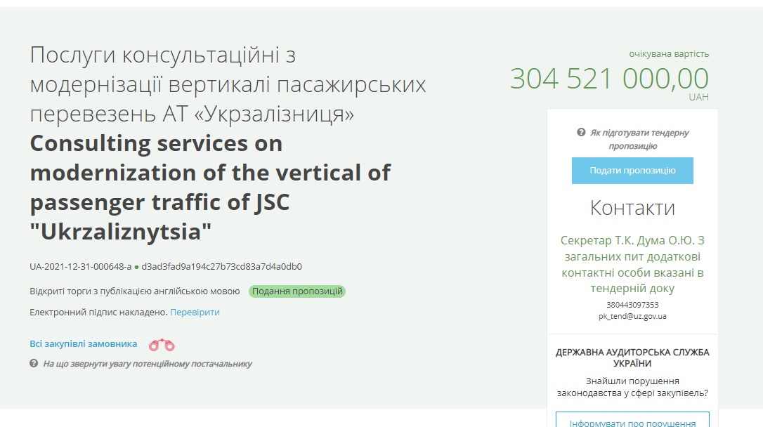 Соответствующий тендер на Prozorro был объявлен 31 декабря.