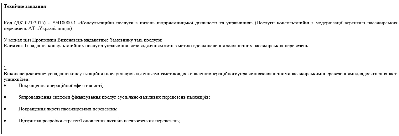 В технических заданиях указано, что исполнитель обеспечивает предоставление консультационных услуг с внедрением изменений с целью улучшения качества пассажирских перевозок, увеличения доходов от бизнеса пассажирских перевозок, увеличения уровня автоматизации и цифровизации и так далее.