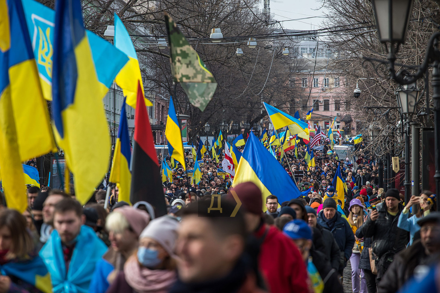 Сегодня, 20 февраля, одесситы прошлись маршем в центре города. Акция проводилась под знаком единения всей страны.