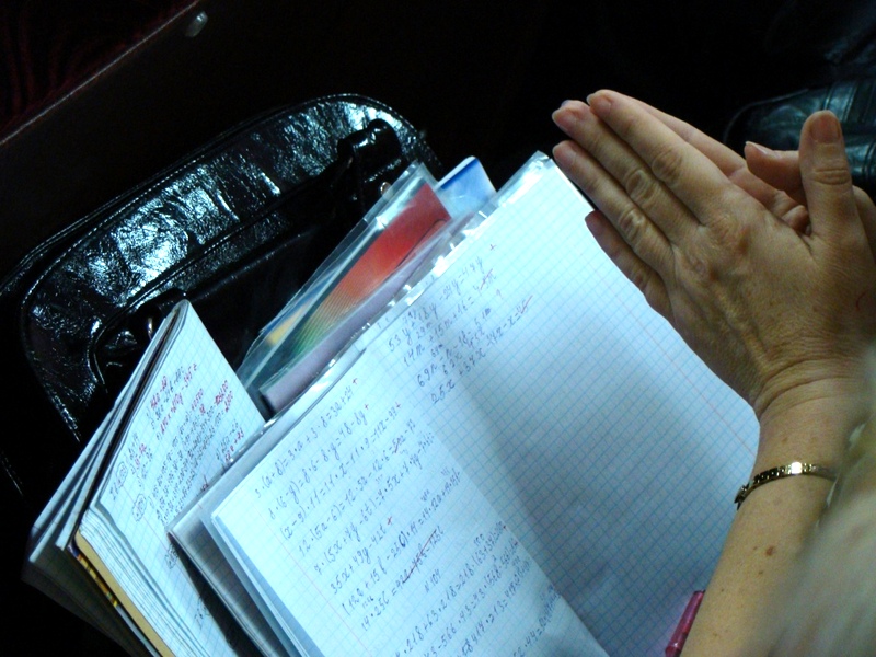 Примечательно, что учителя со своей профессией не расстаются даже на торжественных мероприятиях. Пока конкурсантам желали победы со сцены, пока их поздравляли песням и танцами, одна из учительниц, которая не принимала участие в конкурсе, а просто сидела в зале, проверяла школьные тетрадки по математике.