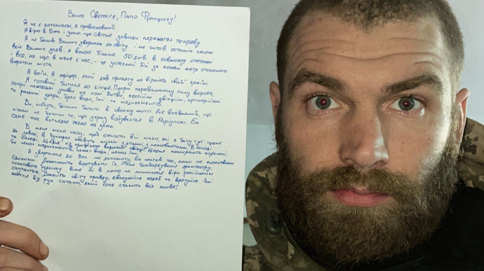 — Ваше Святосте, Папа Франциск! Я не являюсь католиком, я православный. Я верю в Бога и знаю, что свет всегда побеждает тьму. Я не видел Ваших обращений к миру и не читал всех последних Ваших заявлений, я воюю больше 50 дней в полном окружении и все, на что у меня есть время, — это ожесточенное сражение за каждый метр окруженного врагом города. Я воин. Я офицер, давший присягу на верность своей стране. И я готов сражаться до конца. Несмотря на превосходящую силу врага, несмотря на бесчеловечные условия на поле битвы, постоянные артиллерийские и ракетные обстрелы, нехватку воды, еды и медикаментов. Вы, вероятно, видели многое в своей жизни. Но уверен, что никогда не видели, что сейчас происходит в Мариуполе. Ибо именно так выглядит ад на земле. У меня мало времени, чтобы описать все ужасы, которые я вижу здесь каждый день. На заводе в бункерах живут женщины с детьми, младенцами. В голоде и холоде. Каждый день под прицелом вражеской авиации. Каждый день умирают раненые, потому что нет медикаментов, нет воды, нет пищи. Я обращаюсь к вам за помощью. Ибо настало время, когда не единственными молитвами. Помогите спасти их. После бомбежки драмтеатра уже ни у кого не осталось веры российским оккупантам. Донесите миру правду, эвакуируйте людей и спасите их жизнь от рук сатаны, который хочет сжечь все живое, — говорится в письме.