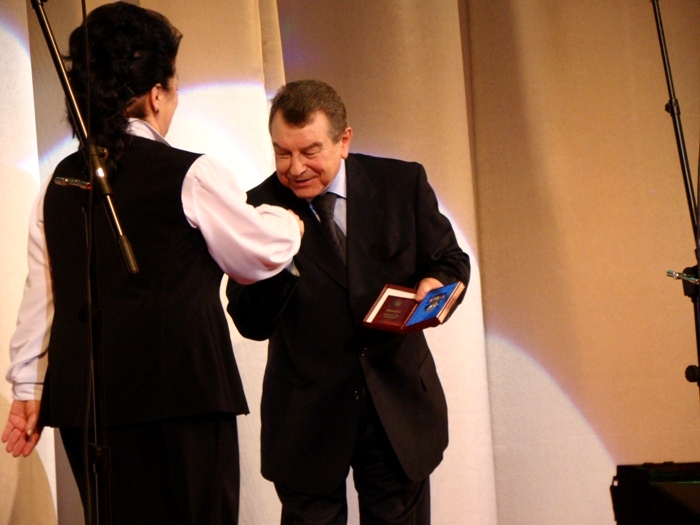 Началось мероприятие с того, что Юрий Богуцкий наградил посмертно орденом за заслуги первой степени руководителя академического хора Николаева Светлану Фоминых, которая недавно трагически погибла в аварии. Ее награду после памятной минуты молчания приняла ее дочь.