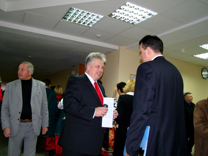 Надо сказать, что встречала его местная элита не с таким содроганием, как, например, главу Верховной Рады Владимира Литвина. Если во время предпоследнего визита спикера у входа в ОДК его довольно долго ждали глава облсовета Татьяна Демченко, вице-губернатор Владимир Луста и мэр Владимир Чайка, а когда машина Литвина подъехала, вся компания вышла к нему навстречу с широкими улыбками, то в случае с Богуцким такого пафоса никто не демонстрировал. Он приехал уже вместе с Владимиром Лустой и другим вице-губернатором Дмитрием Оборонько. Татьяна Демченко не встречала его с распростертыми объятьями. А вице-мэр Раиса Вдовиченко вообще села в зале отдельно от всей «бригады». А когда со сцены представляли присутствующую на мероприятии знать, имени Вдовиченко не назвали в одном ряду с именами Лусты, Оборонько и Демченко.