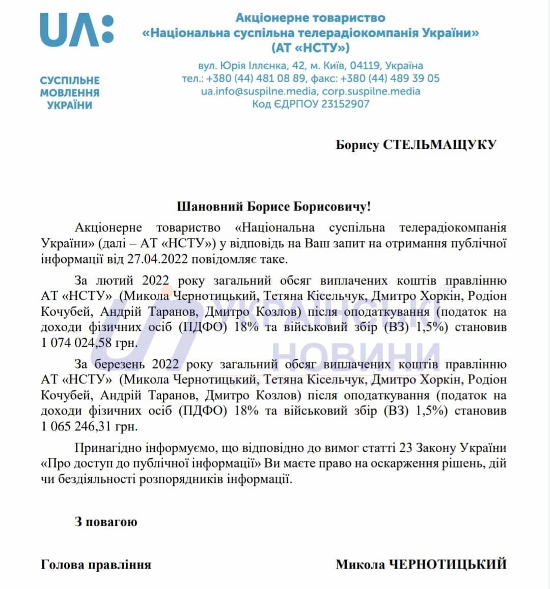 Несмотря на войну: правление «Суспільного» продолжает получать зарплаты больше ₴170 тысяч в месяц