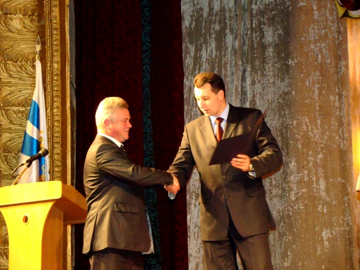 Вице-губернатор Дмитрий Оборонько вручает награды