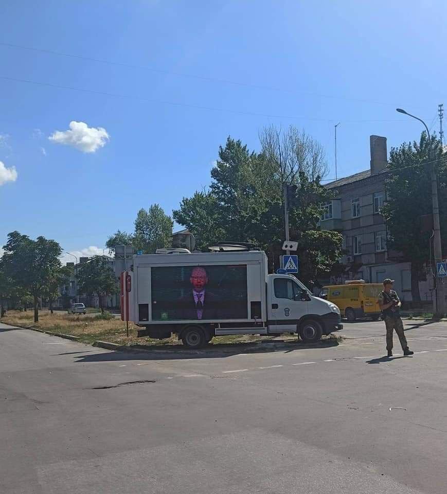 По его словам, из-за того, что в городе не отремонтировано водоснабжение, помыться можно только в уличных душевых палатках. Оккупанты также установили передвижные телевизоры по городу для распространения кремлевской пропаганды.