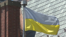 Более 100 украинцев и канадцев собрались в воскресенье, когда подняли флаг страны у мэрии города Шарлоттаун в Канаде.