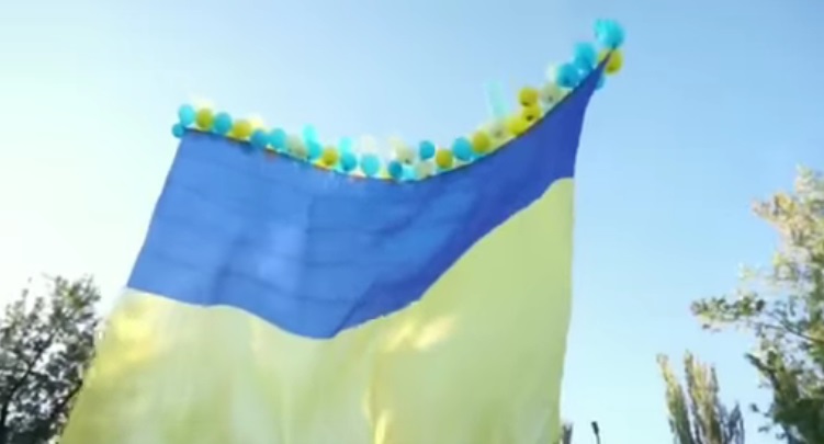 В Авдеевке Донецкой области запустили в небо большой флаг Украины
