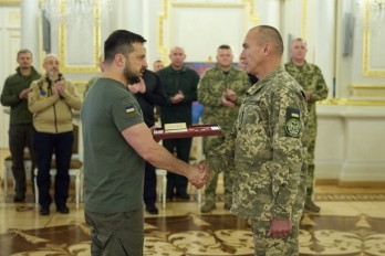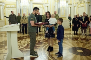 Из рук Главы государства «Золотую Звезду» получила мать боевого медика, сержанта Инны Дерусовой. Она находилась в Ахтырке Сумской области, где, рискуя жизнью, спасла более десяти военнослужащих. Оказывая медицинскую помощь раненым, 26 февраля Инна Дерусова погибла во время вражеских обстрелов.