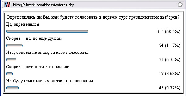 68,5% читателей Николаевских вестей определились с тем, кого поддержат 17 января 2010 года