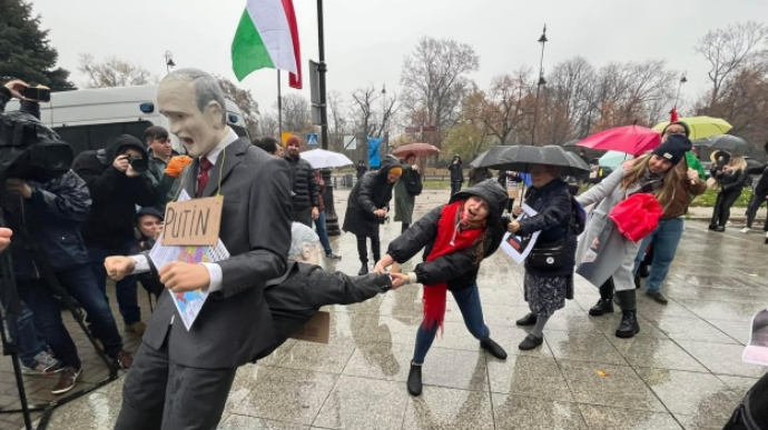 В Варшаве под посольством Венгрии активисты «вытаскивали Орбана из задницы Путина»