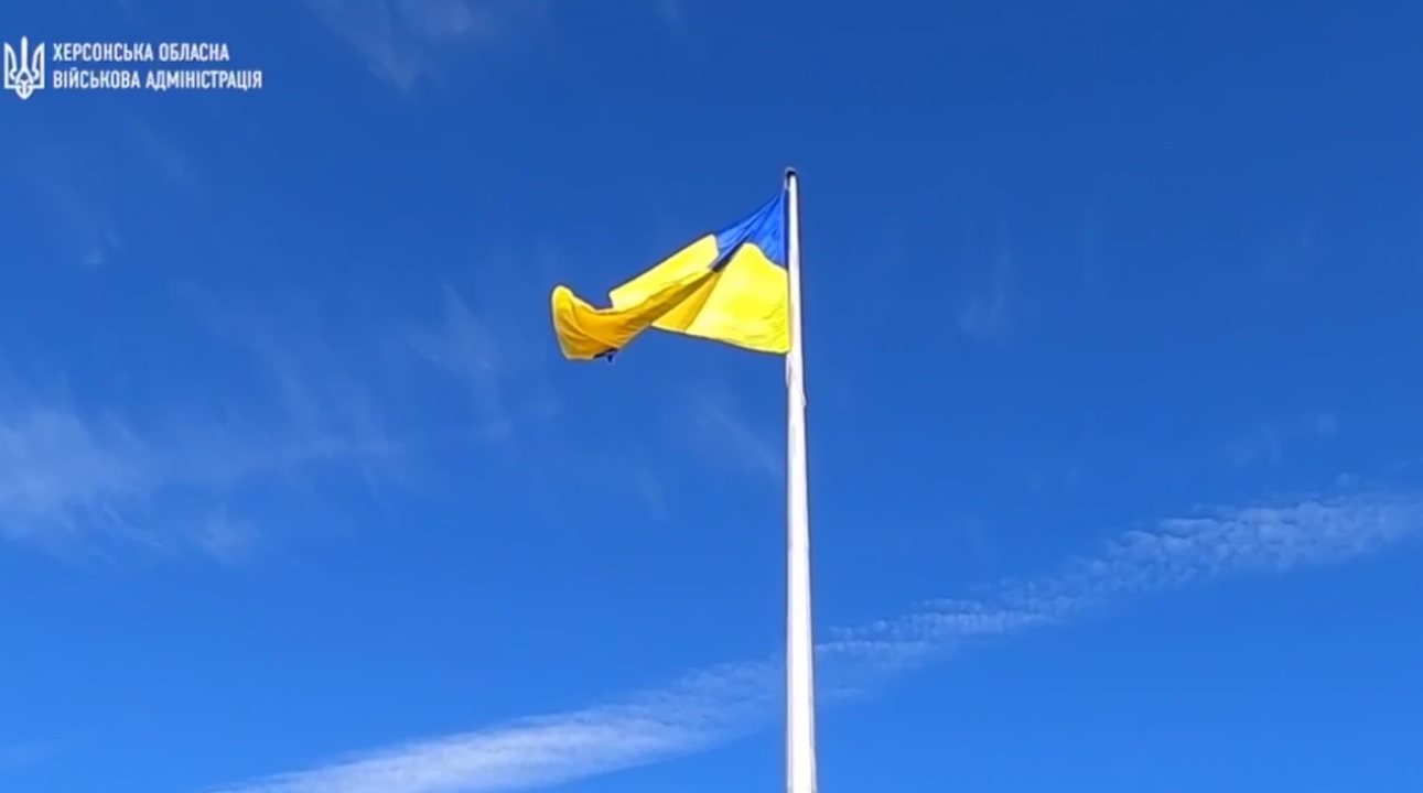 В понедельник, 14 ноября, он был установлен в Херсоне и подняли украинский флаг. Отмечается, что был сделан специальный фундамент на самой высокой точке Херсона, чтобы флаг был виден даже с левого берега.