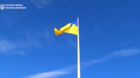 В освобожденном Херсоне подняли огромный флаг Украины на флагшток, переживший оккупацию города