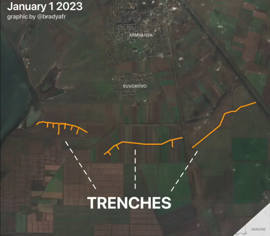 Российские захватчики вырыли траншеи у перешейков к югу от Армянска и Суворового.
