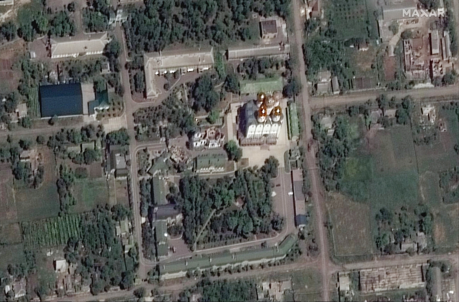 Подібний рівень пошкоджень видно на наступних фото, на яких зображено Свято-Успенський Миколо-Василівський монастир, що в селі Микільському (Донецька область) поблизу Вугледара.