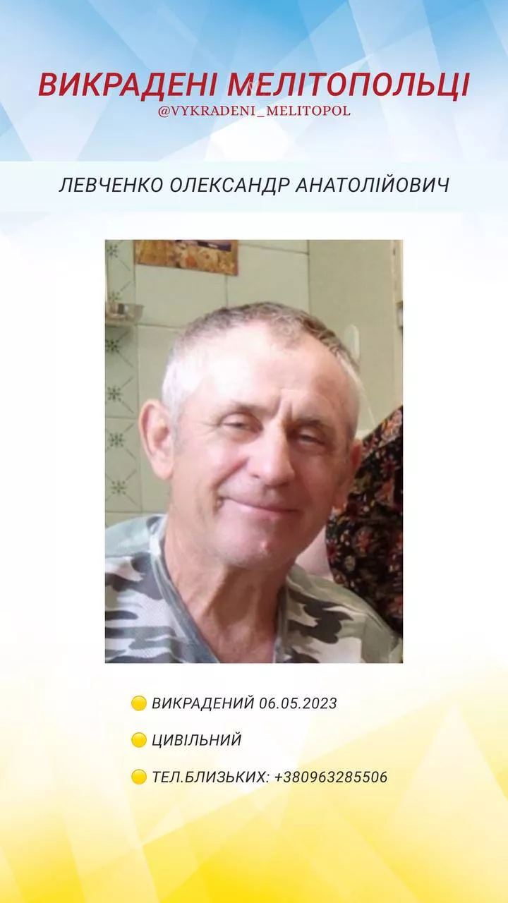 Связь с Левченко исчезла 6 мая. Близкие не сразу забили тревогу, поскольку супруги могли поехать на дачу, в пригород Мелитополя, где нет связи, или на кладбище за город, как делали это раньше.