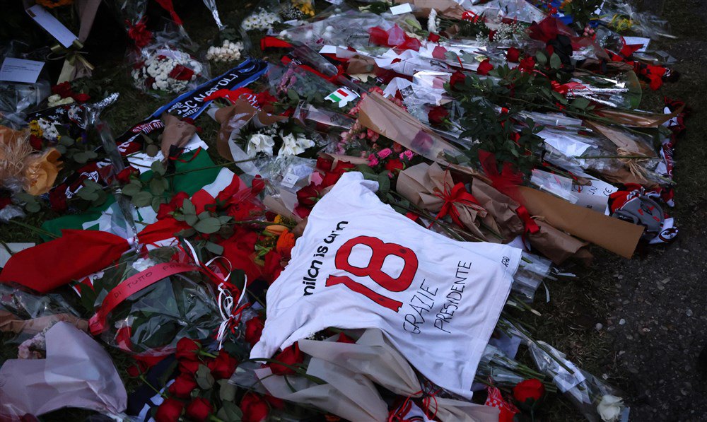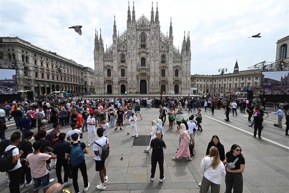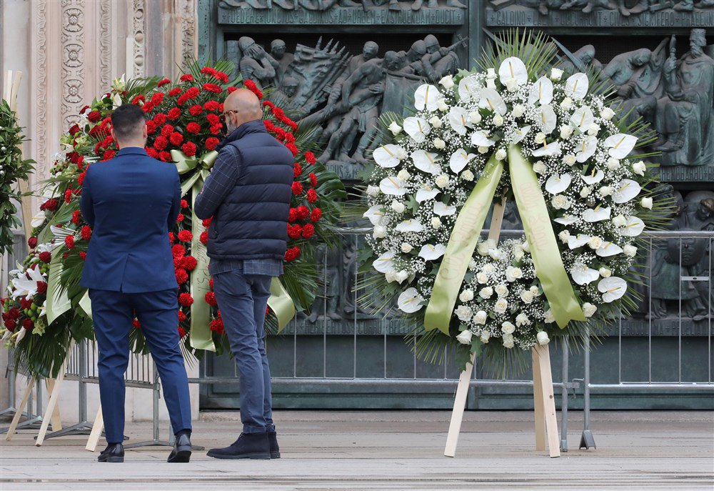 В Милане венки возложили на фасад городского готического собора перед похоронами, которые начинаются в 16:00 по киевскому времени, а также установили гигантские экраны, чтобы люди могли следить за ними с площади.