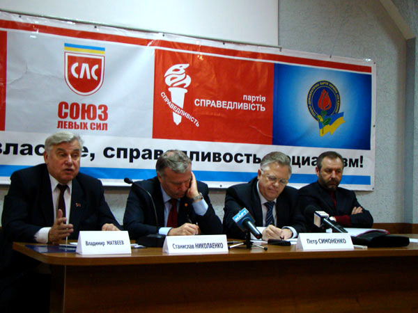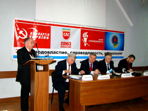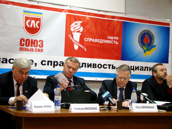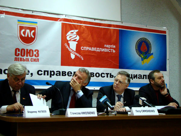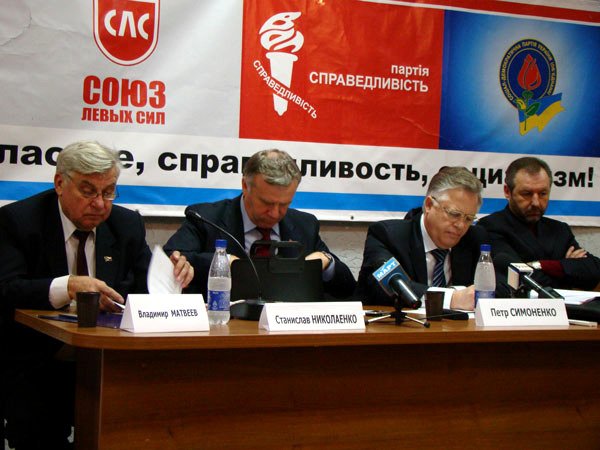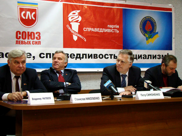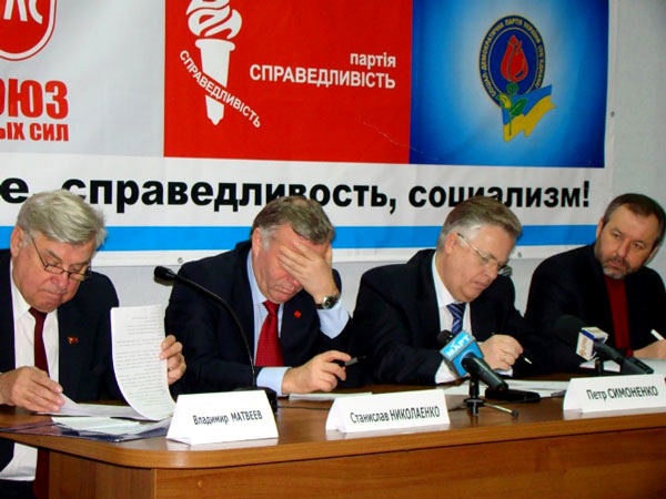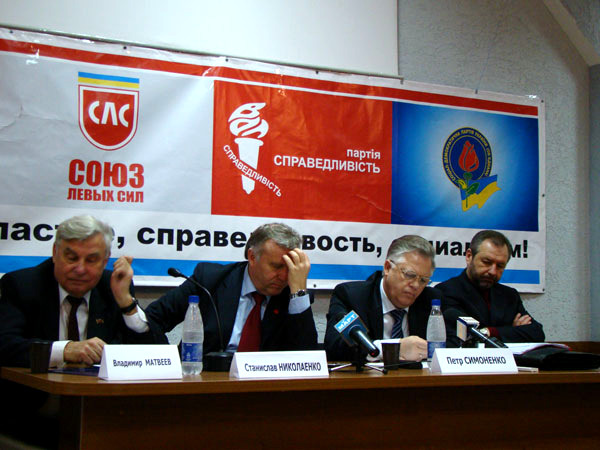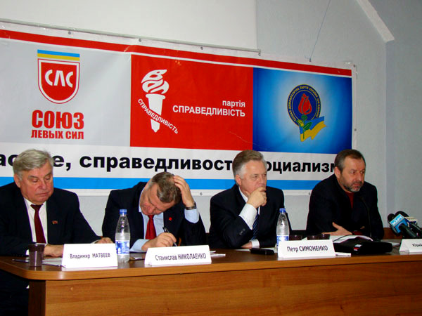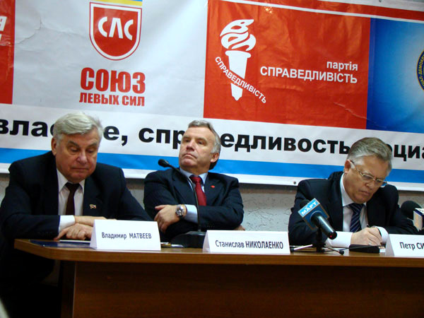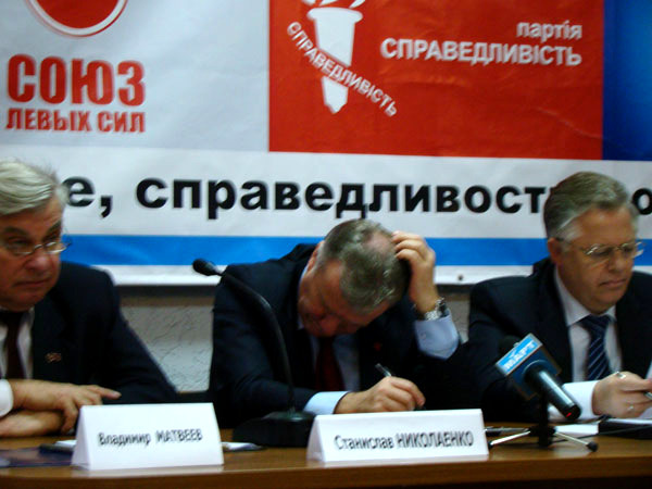 Главный коммунист страны Петр Симоненко приехал в Николаев, чтобы провести т. н. форум социальной безопасности. В бизнес-центре «Александровский» собрались местные коммунисты. В президиуме сидели народный депутат Владимир Матвеев, который фактически вел форум, бывший министр образования Станислав Николаенко, сам главный герой, а также глава СДПУ(о), он же – доверенное лицо Симоненко Юрий Загородний.