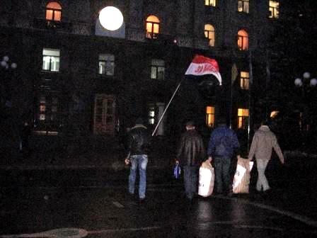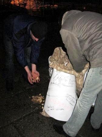 В итоге участники акции якобы высыпали «угощение» из мешков под мэрию и обладминистрацию и преспокойно себе разошлись.