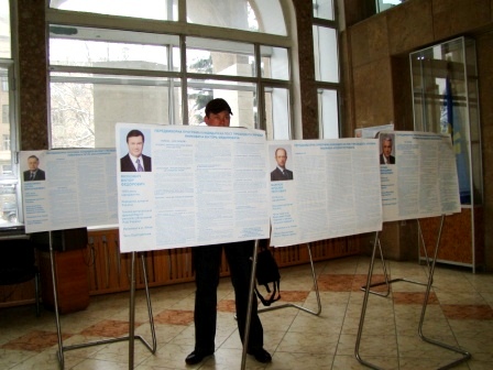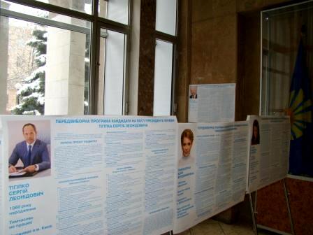 Заходим на первый участок. Довольно много место, несколько урн, правоохранитель на стульчике, кабинки для голосования закрытые. На стендах – информация о девяти кандидатах в президенты: Януковиче, Яценюке, Литвине, Симоненко, Протывсих, Тигипко, Тимошенко, Супрун и Морозе. Нет ни Богословской, ни Бродского, ни Гриценко, ни Костенко, ни других кандидатов.