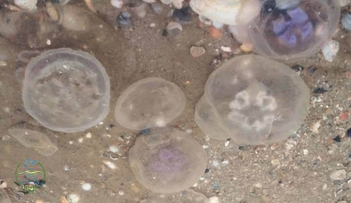 «Мы обнаружили 2 километра побережья, на котором было выброшено много медуз вида Аурелия ушастая — Aurelia aurita. Всего только на песке у воды было почти 5000 мелких медуз размерами от 2 до 10 сантиметров (в среднем 5 сантиметров)», — отметил он.