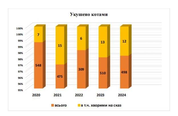 «В 2024 году почти вдвое снизилось количество укушенных дикими животными — 18, против 32 в 2023 году», — говорится в сообщении.