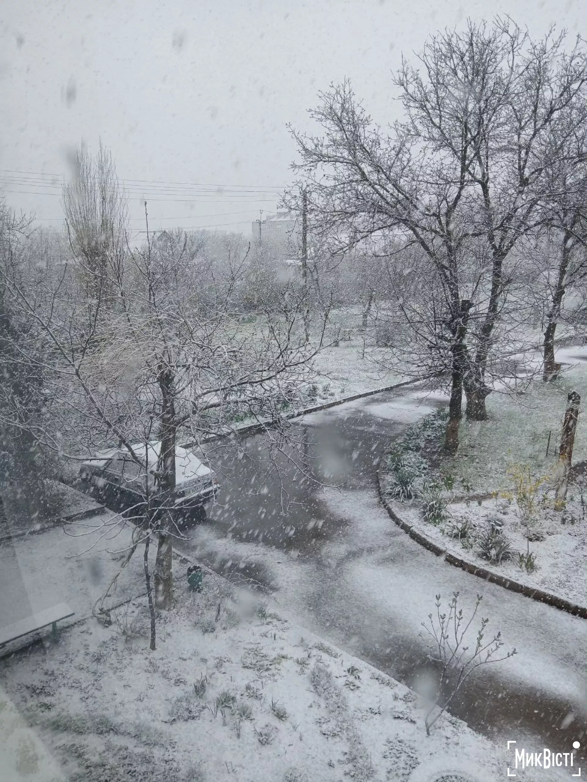 На Николаевщине в Вознесенске и Южноукраинске 6 апреля выпал снег. В то же время в некоторых домохозяйствах уже успела зацвести вишня.