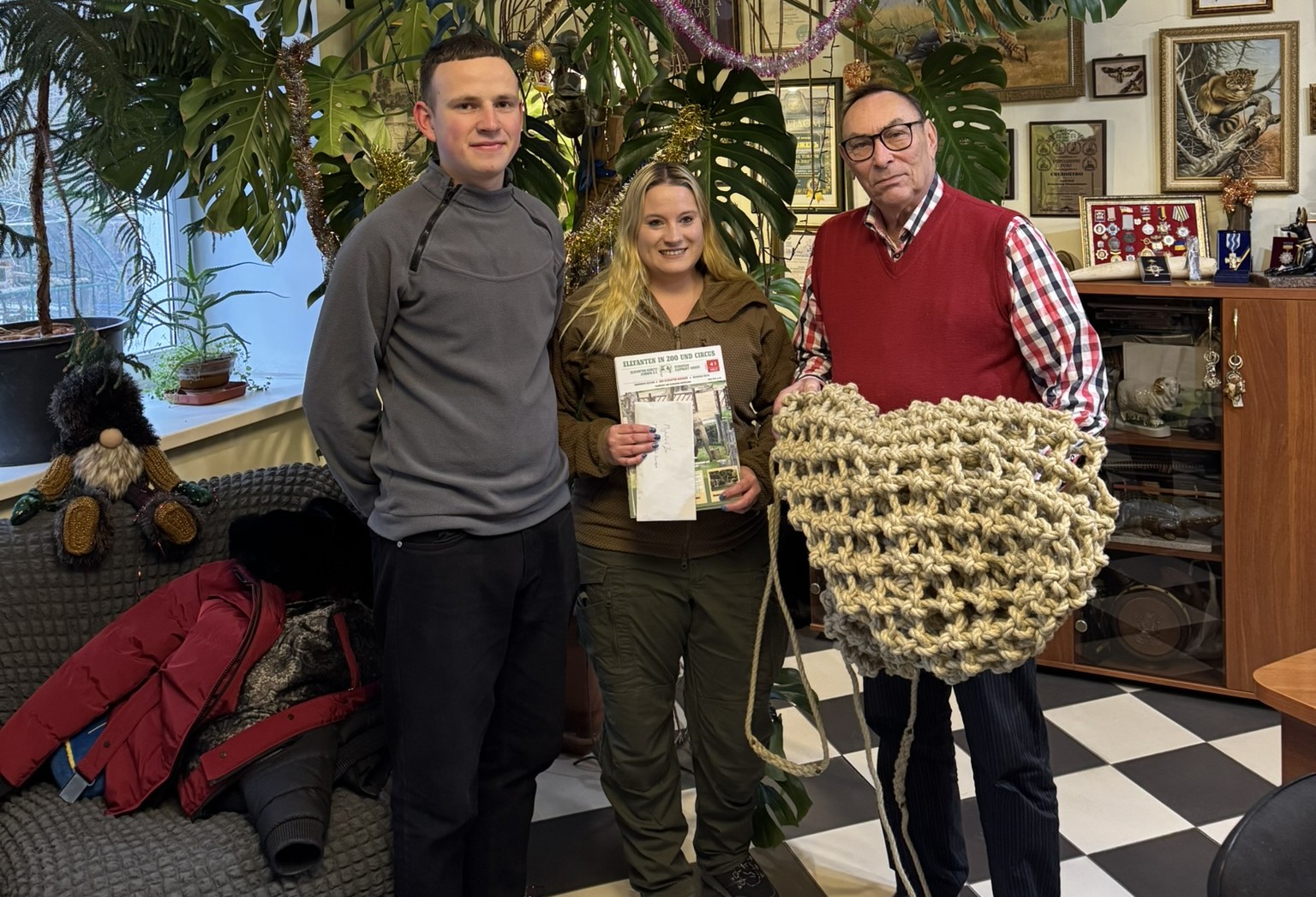 Об этом сообщили на странице Николаевского зоопарка в Facebook. В частности, ученый передала специальные сетки для сена, изготовленные из природных материалов мастером Гарри Уайтом (Garry White). Подарки поступили в зоопарк от Европейской группы по слонам (European Elephant Group).