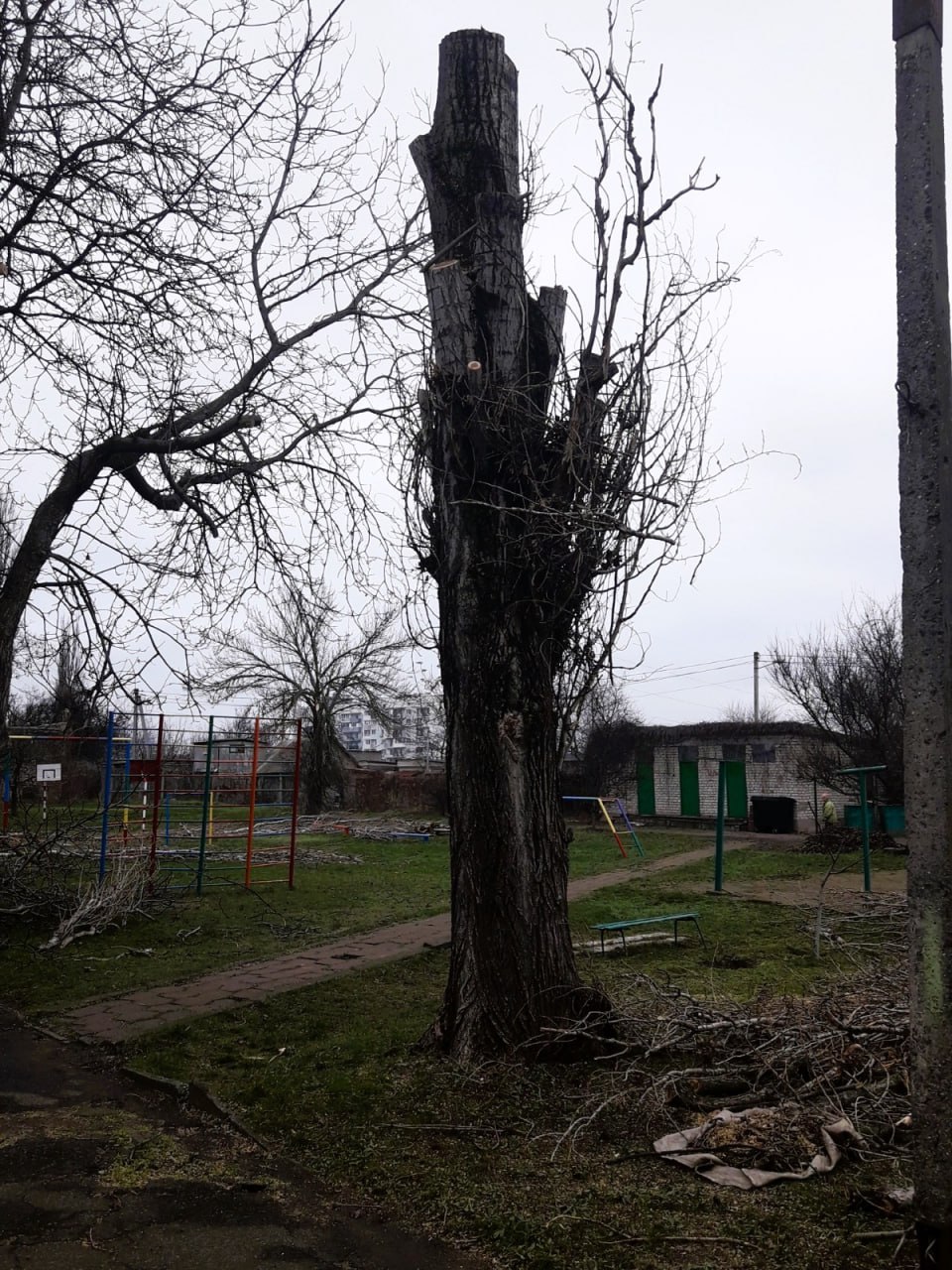 В Николаеве на проспекте Героев Украины на территории одного из детских садов подрядная организация кронировала деревья, в результате чего шесть деревьев были повреждены до основания.