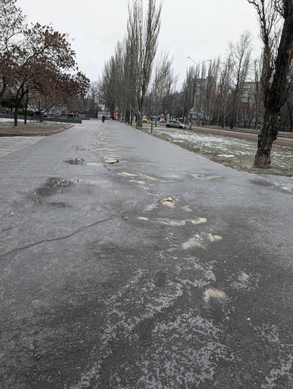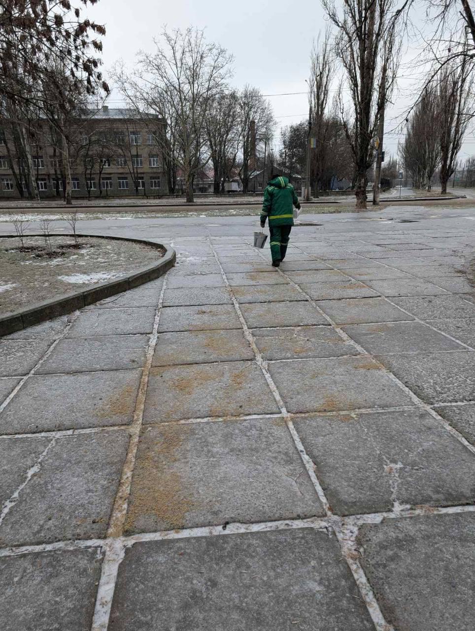 Работники коммунального предприятия «Николаевские парки» с утра работают в усиленном режиме из-за гололеда. Для обработки тротуаров и пешеходных зон использовали 22 700 килограмм противогололедной смеси.