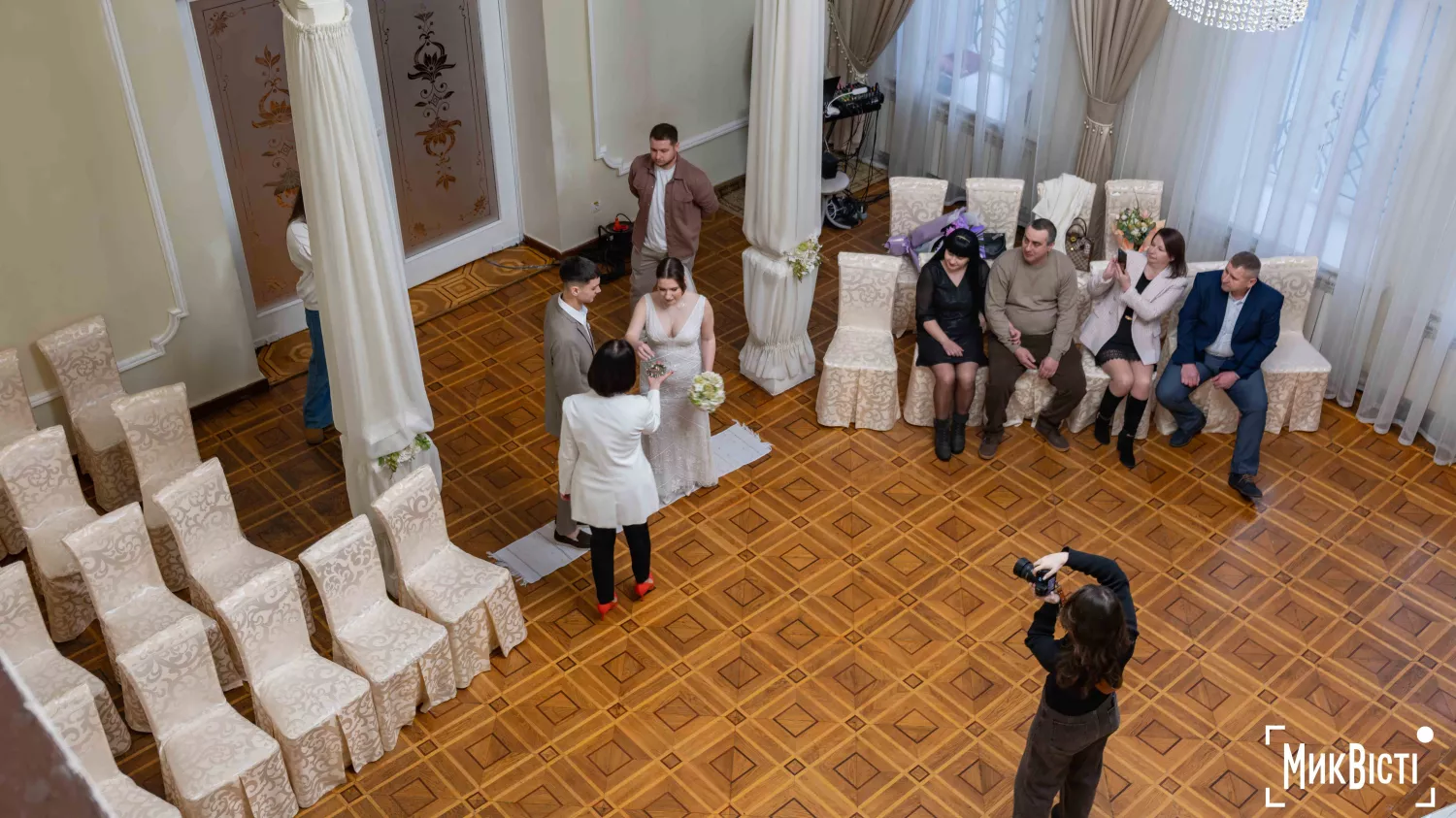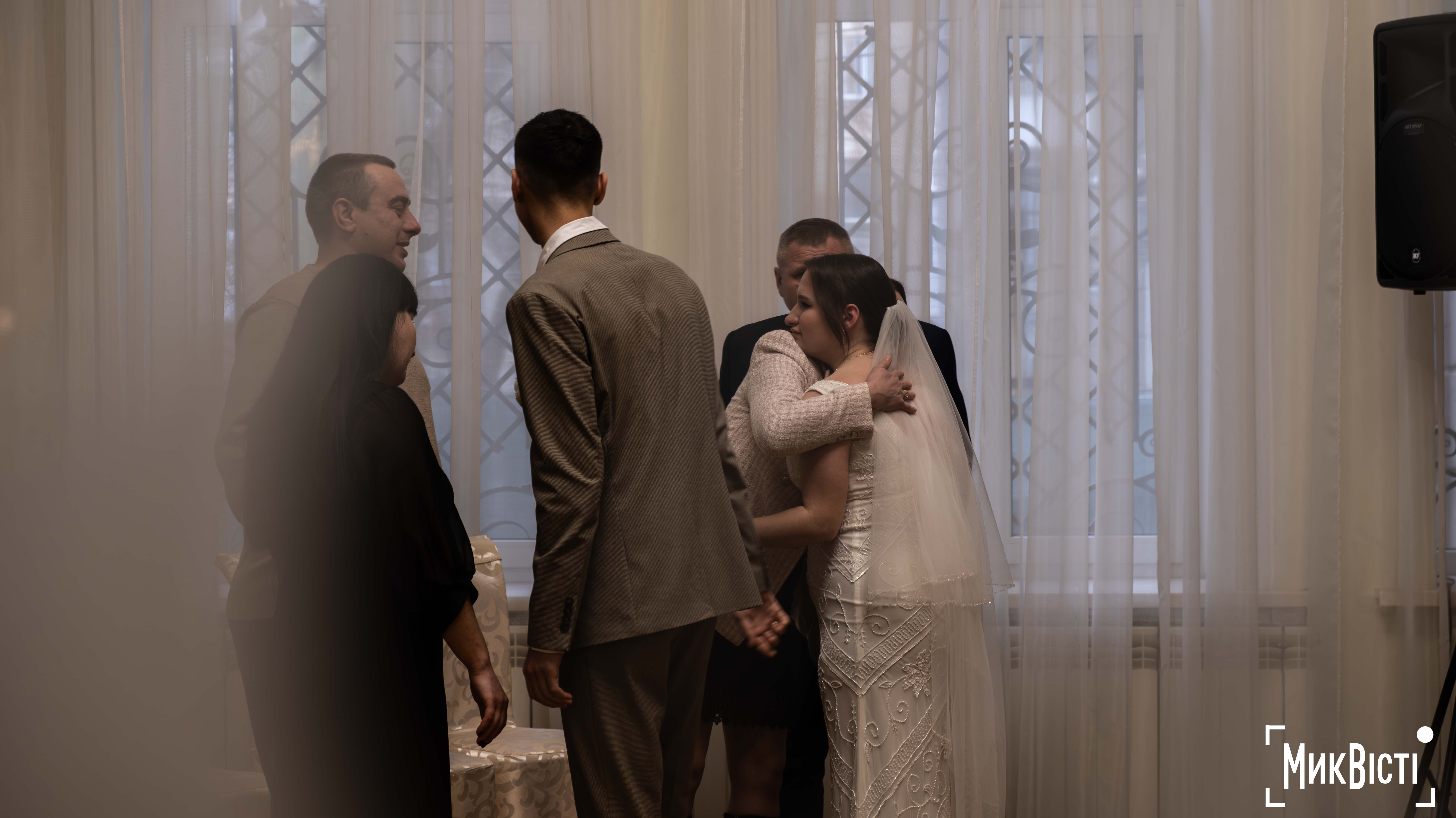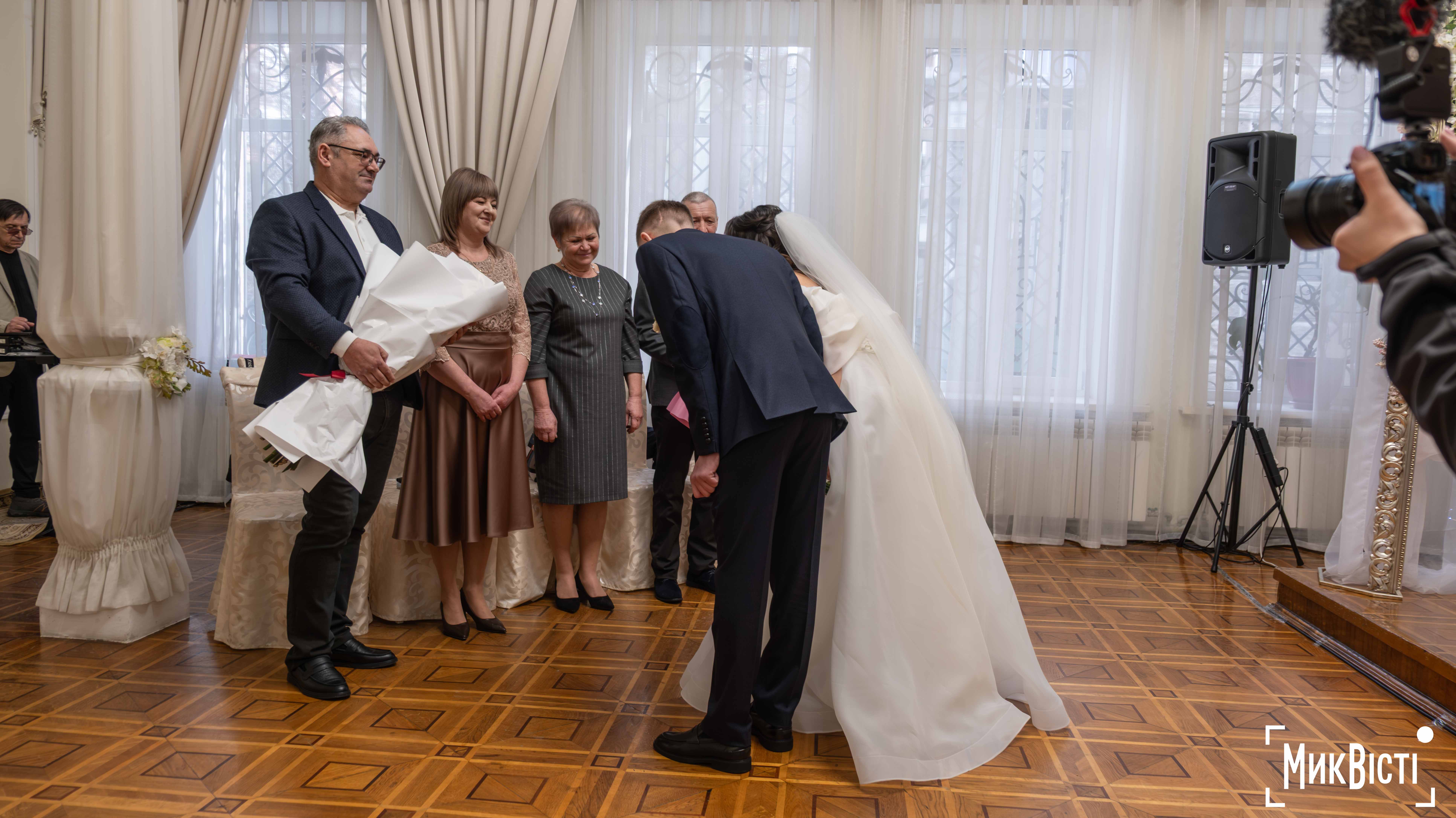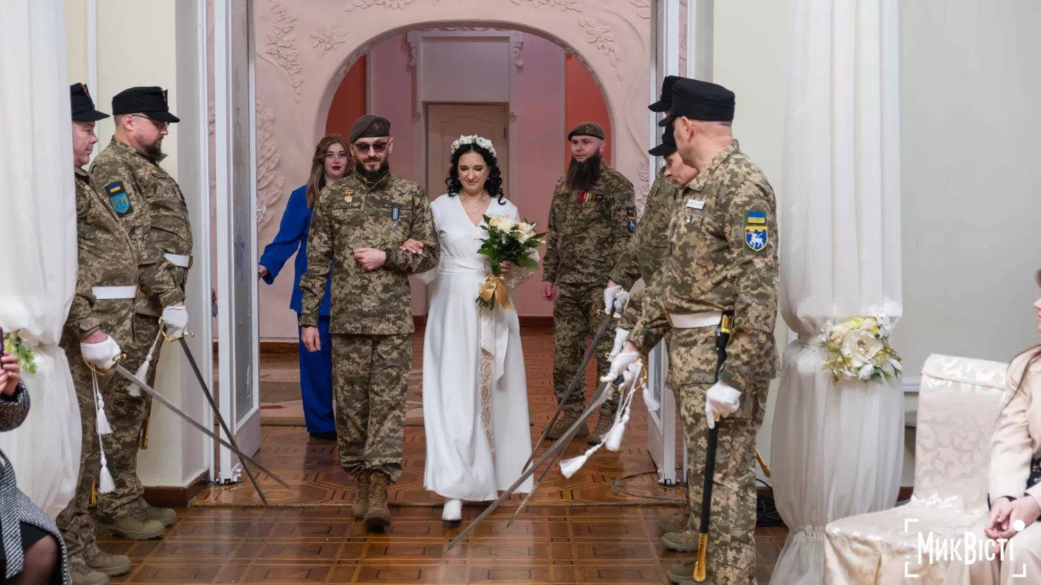 Поддержать Игоря приехали его побратимы. Они устроили символическую церемонию прямо в зале Дворца торжественных событий: военные выстроились в живой коридор и опустили сабли перед молодоженами, когда те входили в зал. Момент стал одной из самых трогательных частей церемонии и вызвал эмоциональную реакцию не только гостей, но и работников заведения.