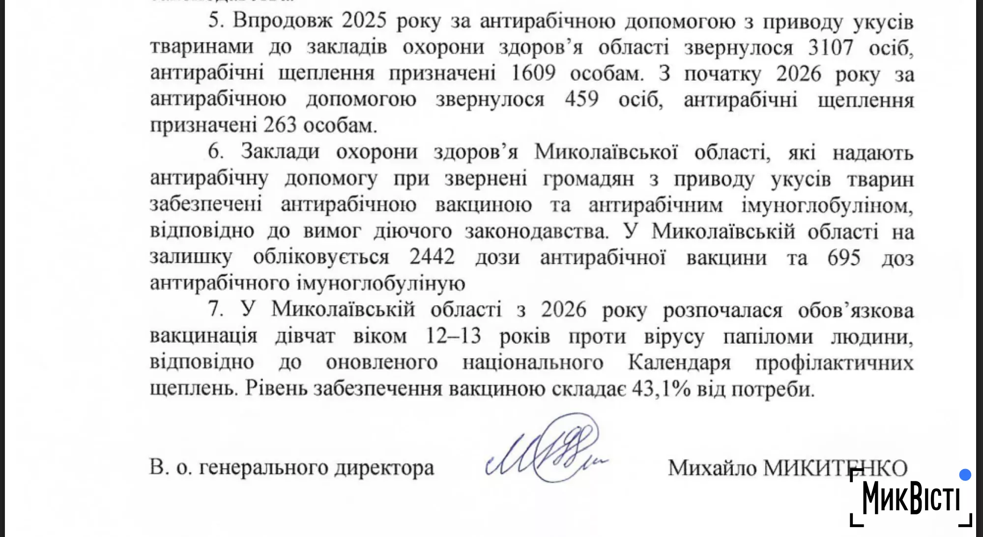 — В Николаевской области в наличии числится 2442 дозы антирабической вакцины и 695 доз антирабического иммуноглобулина, — говорится в ответе на запрос.