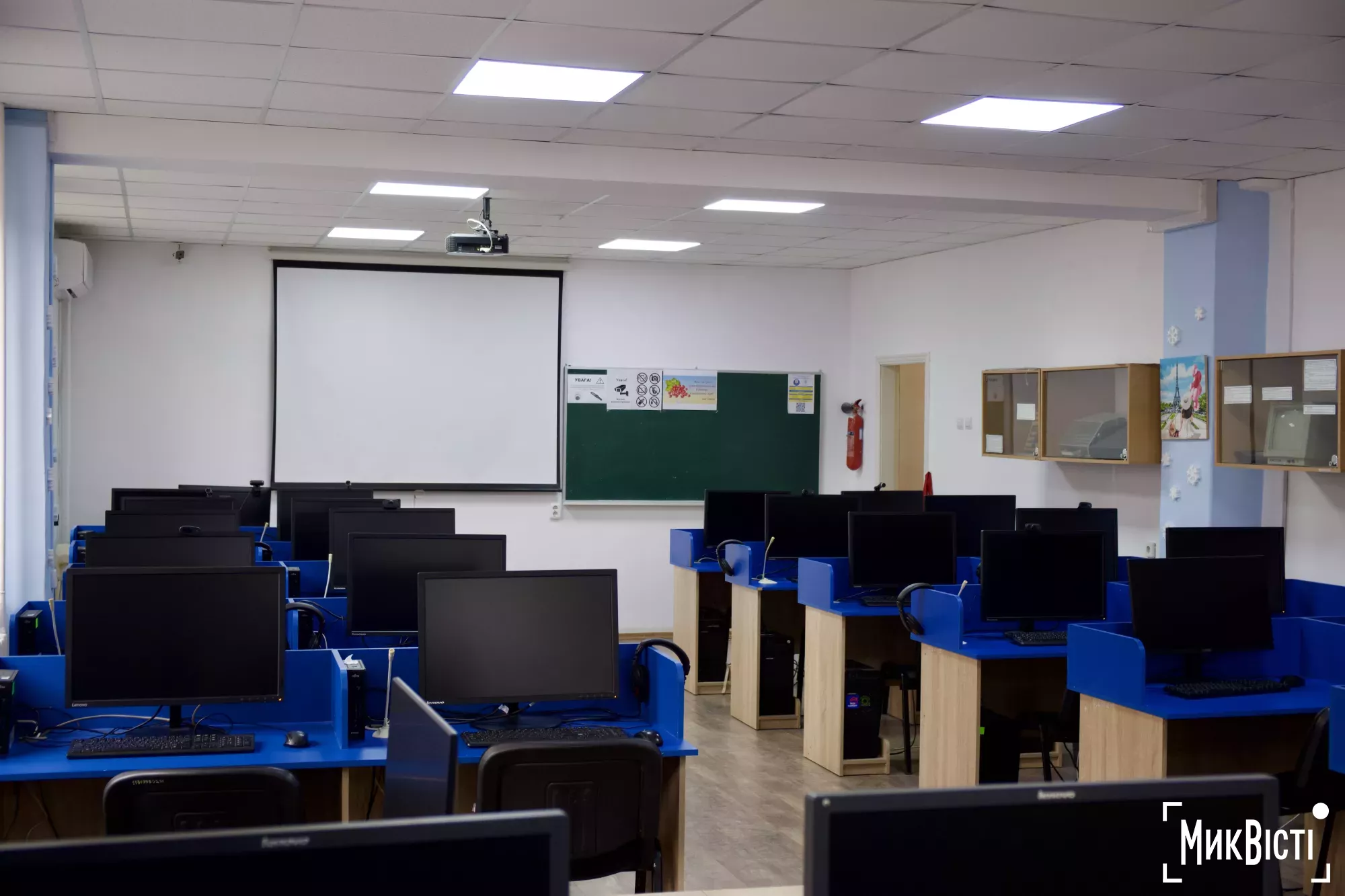 В помещении одновременно могут сдавать экзамен до 30 человек. Оно расположено на первом этаже, что обеспечивает доступность, а рядом есть спуск к укрытию, где также оборудовано подобное помещение на случай опасности.