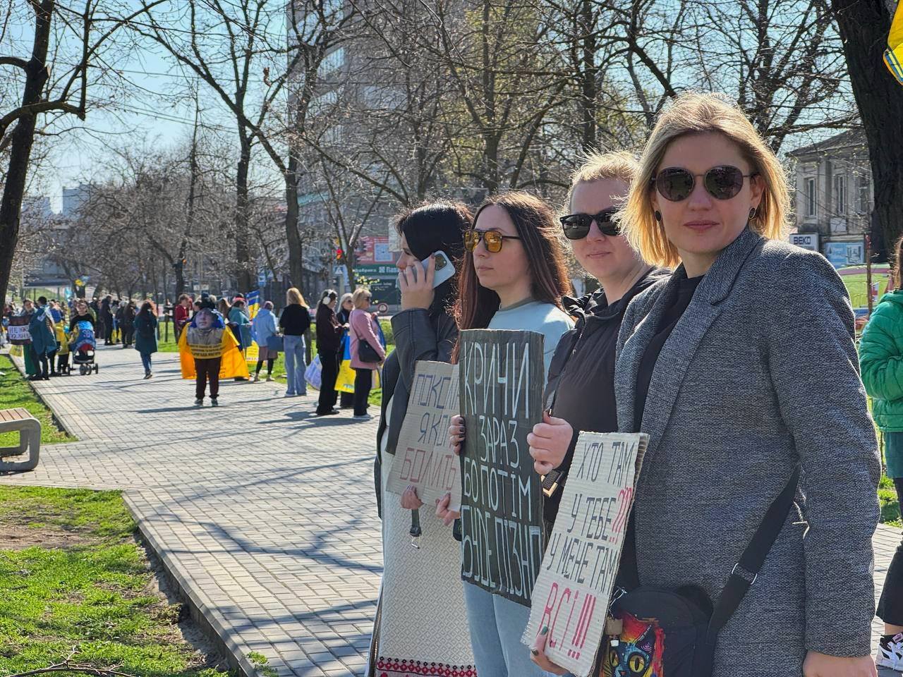 К акции присоединились родные и близкие защитников, а также неравнодушные горожане. Люди держали флаги бригад, фотографии военных и плакаты с надписями: «Кричи сейчас, потому что потом будет поздно», «Не молчите, плен убивает», «Папа, я жду».