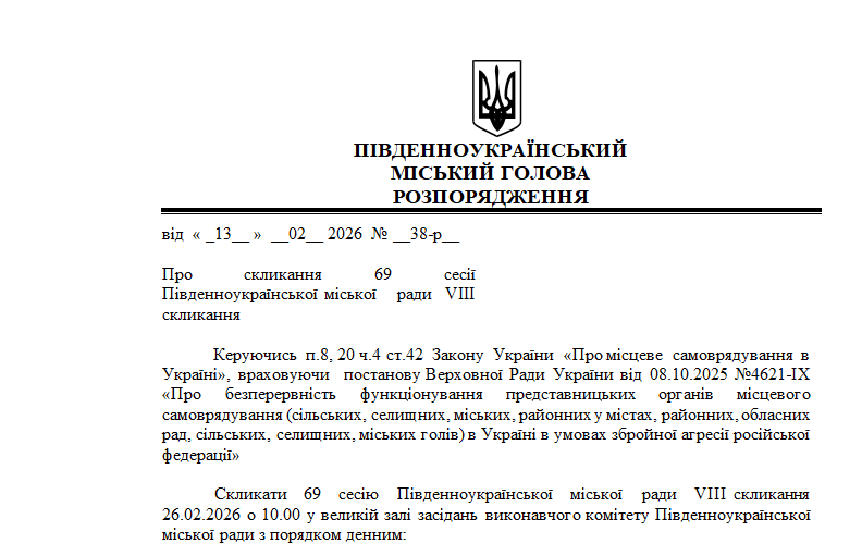 В последний раз депутаты Южноукраинского городского совета собирались на заседание 22 января. На сайте городского совета сообщили, что 68-я сессия была запланирована еще на октябрь 2025 года и неоднократно переносилась из-за отсутствия кворума.