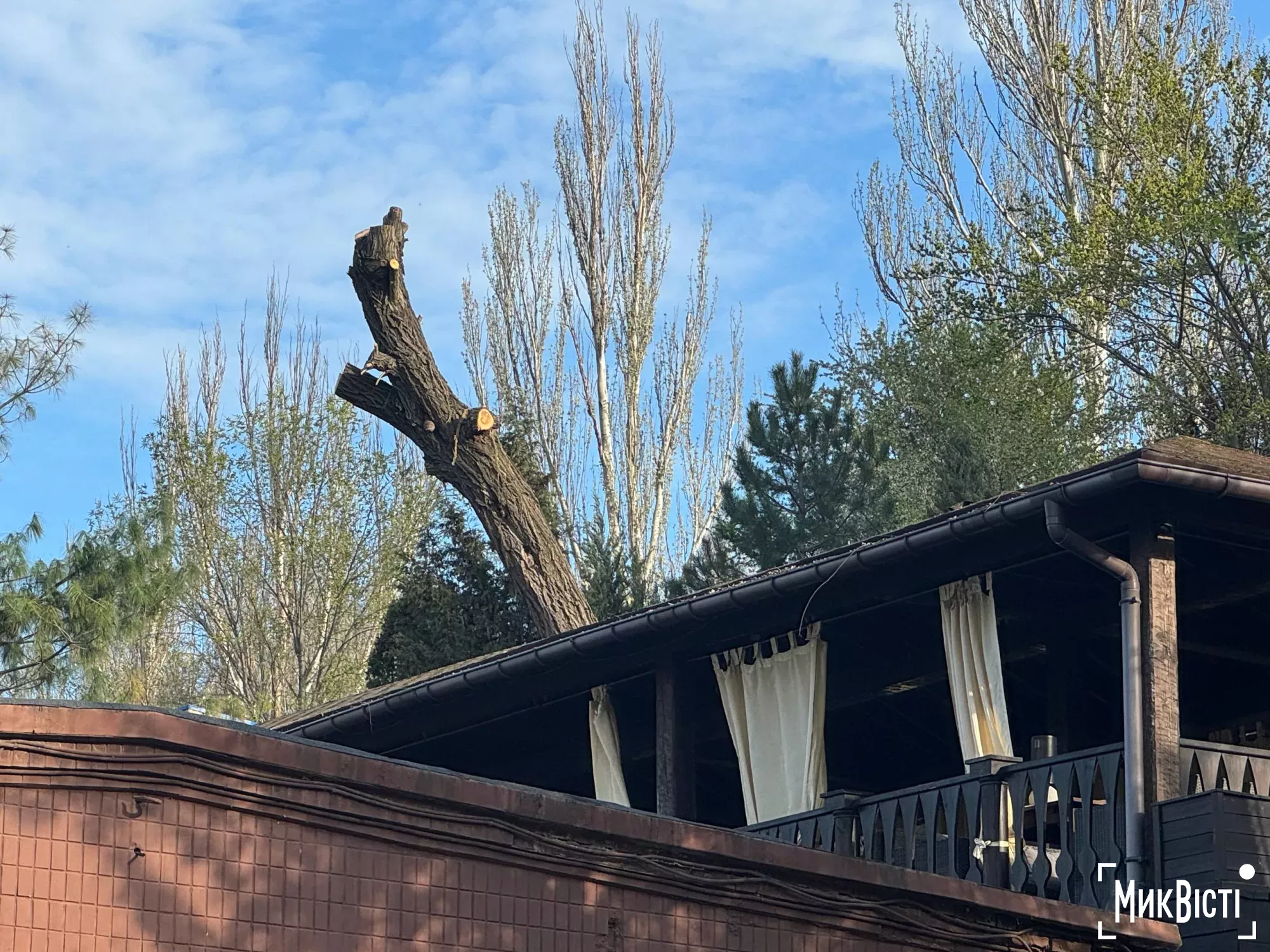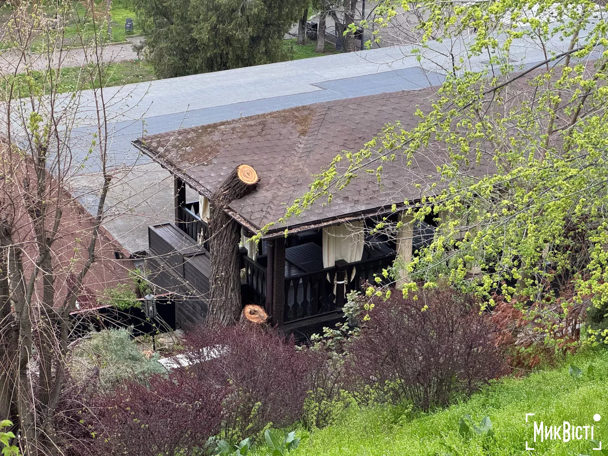 Представители коммунального предприятия «Николаевские парки» спилили 88-летнюю иву возле ресторана «Феникс» (бывшая «Шамбала») по инициативе владельцев заведения.