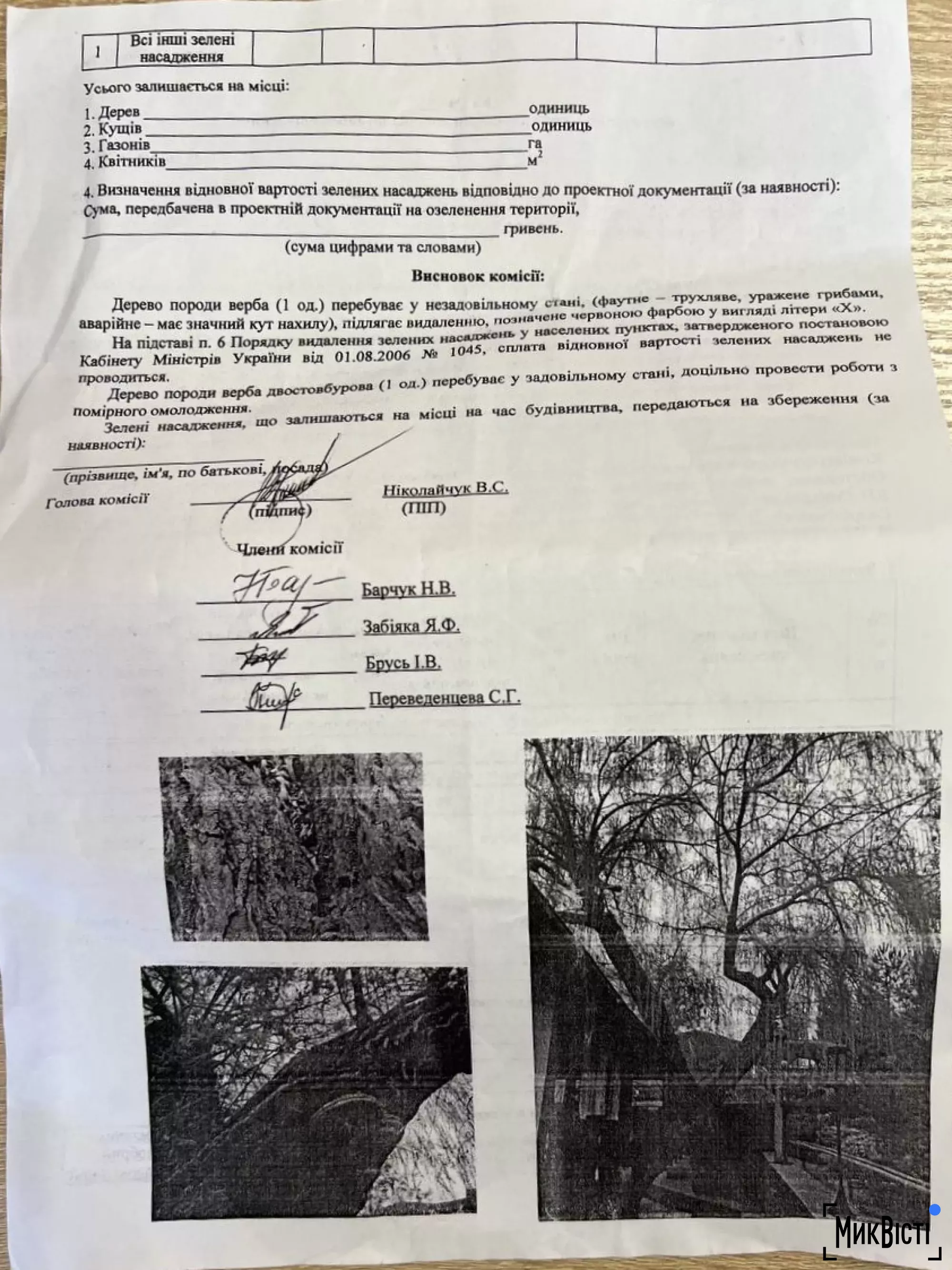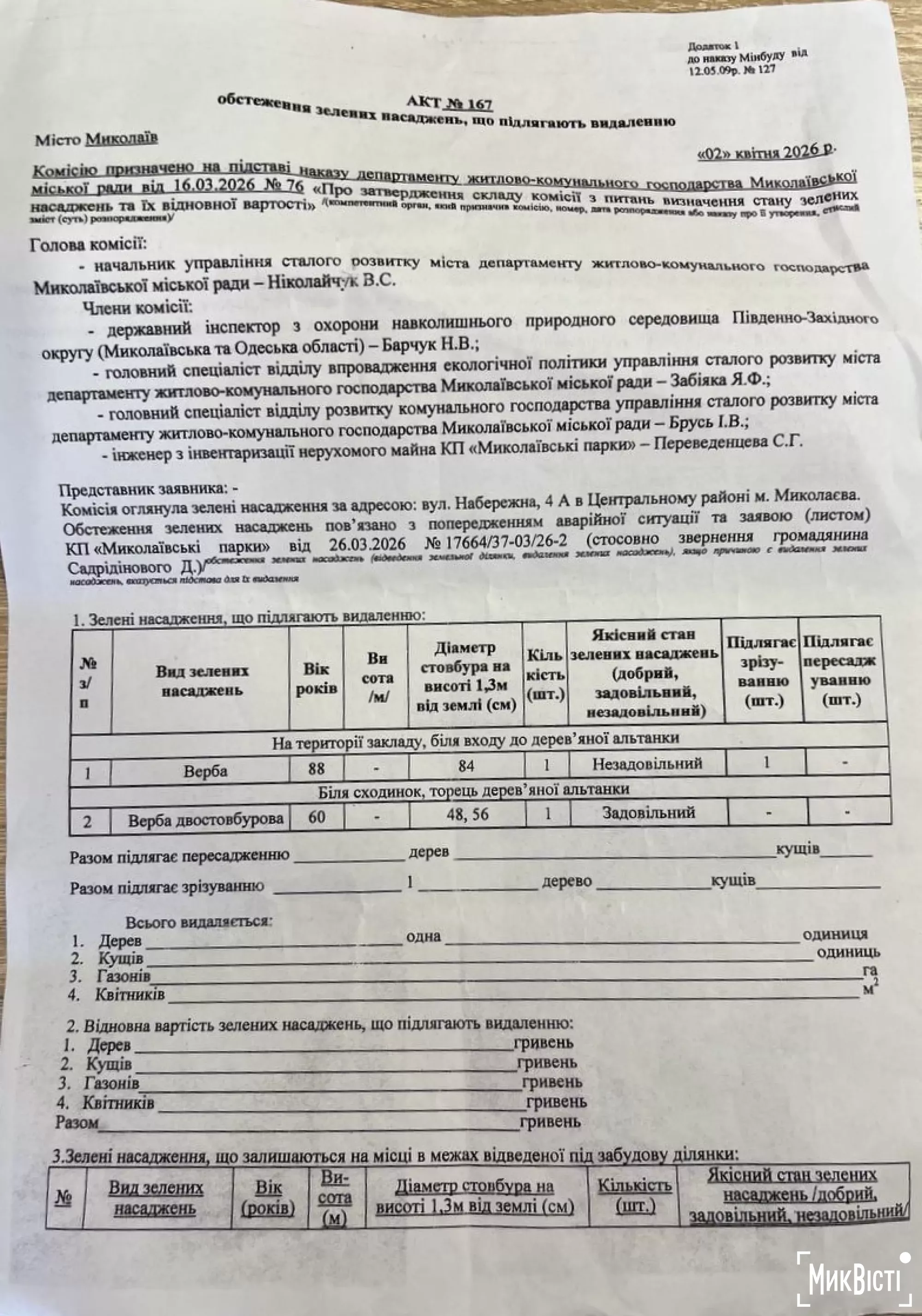 Об этом говорится в акте обследования деревьев, копия которого находится в распоряжении редакции «НикВести».