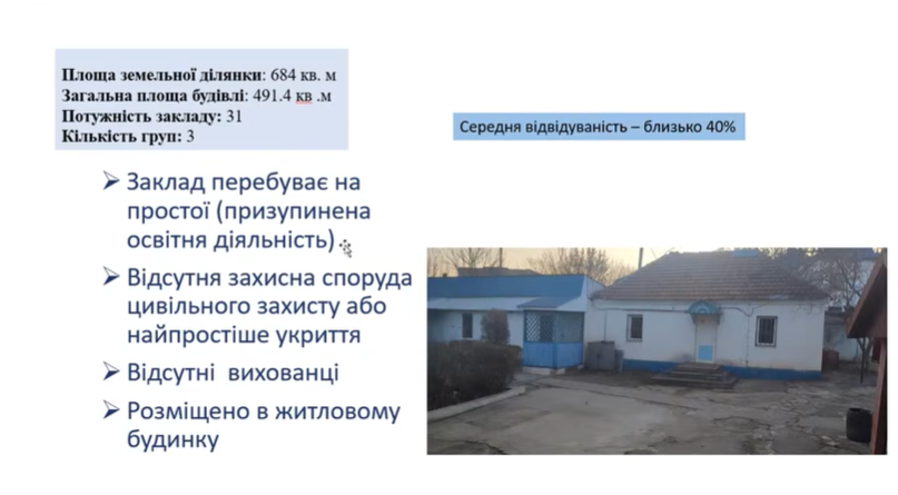 В этом детском саду также нет укрытия и возможности его сделать. Детский сад сегодня простаивает.