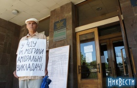 Скандально известный пенсионер Анатолий Ильченко пикетирует сегодня, 2 июля, Черноморский государственный университет им. Петра Могилы.
