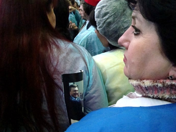 Одна женщина на встречу с Тимошенко взяла с собой буклет с портретом Януковича.