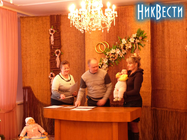 Детям выдали свидетельства о рождении, родителям зачитали объяснения значений имен их детей и поздравление от мэра Владимира Чайки.