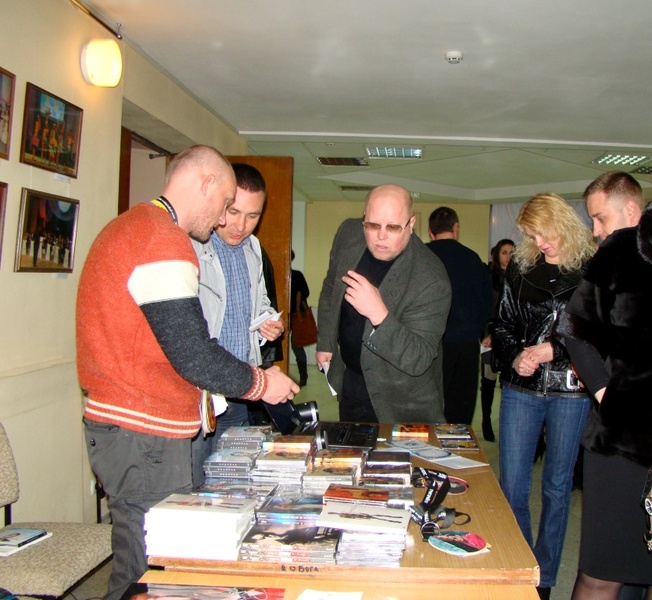 Олег Богомаз рассматривает диски с песнями Г. Лепса