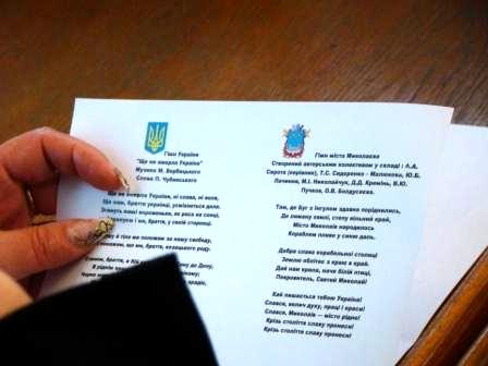 Поскольку народные избранники в Николаеве до сих пор не научились уважать государственные символы Украины (даже флаг Украины, который в прошлом году депутат горсовета Бондаренко пыталась снять в общественном месте, за что была задержана милицией), в рядах депутатов стали вести просветительскую работу.