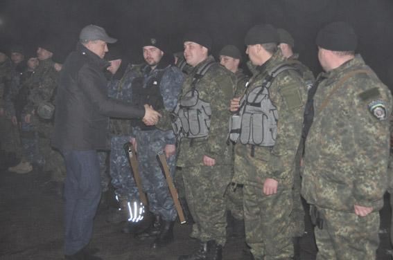 Начальник УМВД Украины в Николаевской области полковник милиции Виталий Гончаров также прибыл на отправку в зону проведения Антитеррористической операции очередного отряда работников специальной роты милиции.