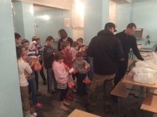 Всем отрядом николаевские военные собрали немного денег и купили мандарины, печенье, хлопья, сладкую вату, соки и мягкие игрушки.